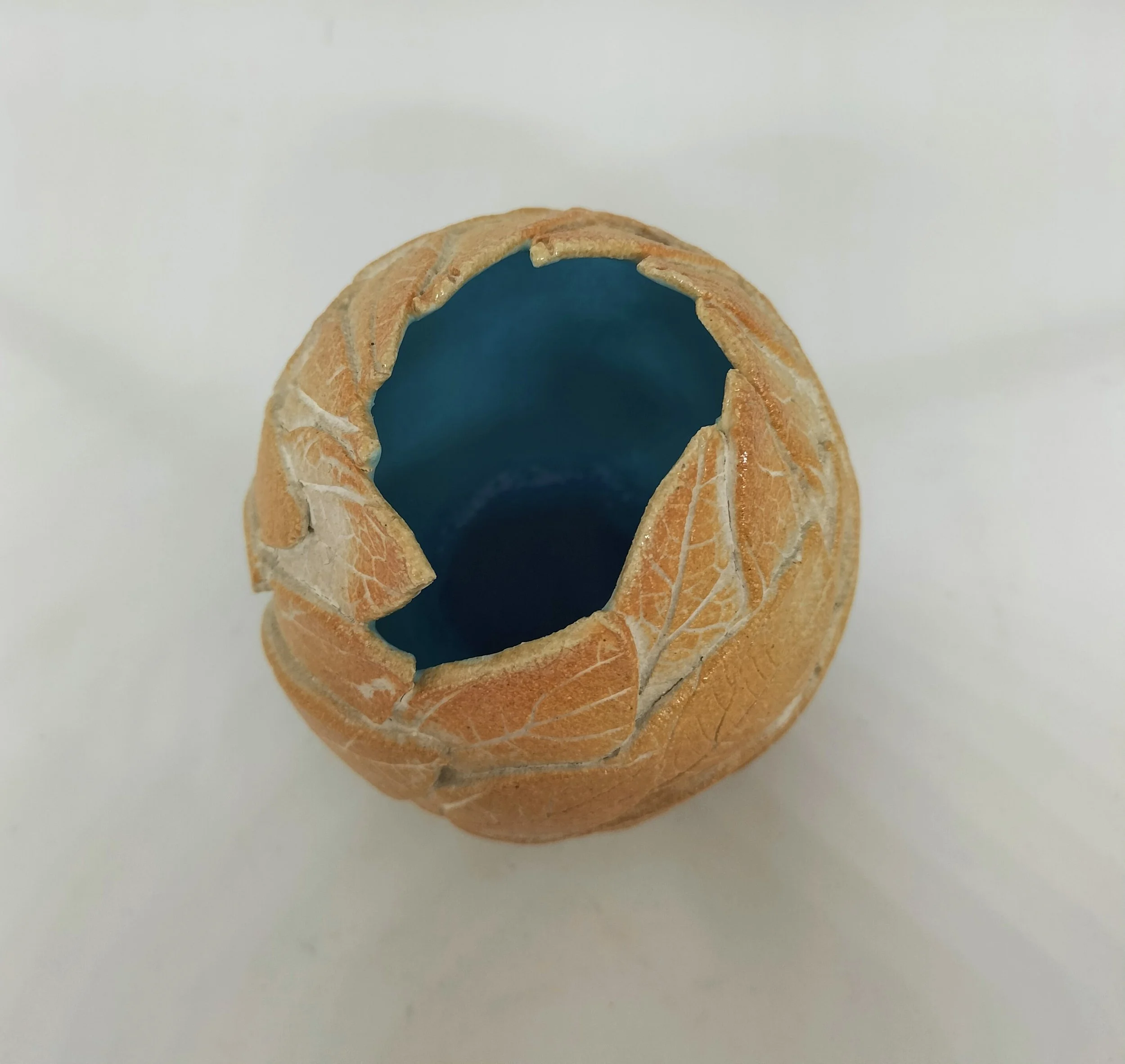 A unique stoneware ceramic with leaf design by Faye Mayo